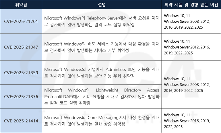 | Microsoft 01월 정기 보안 업데이트 권고 (0) | 2025.01.24 |