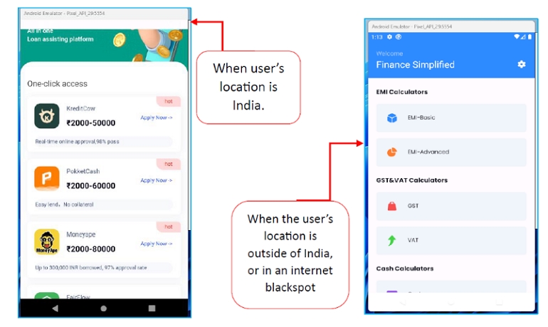 사용자가 앱을 실행할 때, 기기의 위치가 인도로 확인되면 앱의 UI를 수정해 공격할 준비를 한다. 이후, 사용자에게 대출 신청을 추천하면서 WebView로 가짜 대출 신청서를 보여주고, 공격자가 준비한 외부 사이트로 리다이렉션해 악성 APK 파일을 다운로드하도록 유도한다. 설치된 APK 파일은 카메라와 통화 기록 및 외부 저장소 등의 접근 권한을 요청하며, 이를 악용해 무단 촬영과 감시 및 데이터 유출과 같은 공격을 수행한다.