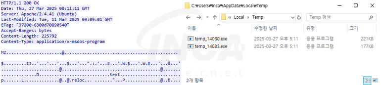 공격자에게 데이터를 전송한 뒤에는 두 개의 실행 파일을 ‘%temp%\temp_[랜덤 5자리 숫자].exe’ 경로에 다운로드한다. 이 중 “temp_14083.exe”는 클립보드의 데이터를 변경하는 ClipBanker이며 나머지 하나인 “temp_14080.exe”는 파일 탐색 이외에 별다른 악성 행위가 발견되지 않았다.