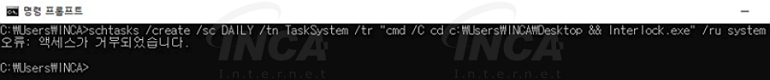 -s 옵션은 작업 스케줄러에 현재 샘플을 실행하는 작업을 등록 후 해당 작업을 바로 시작한다. schtasks 명령어를 이용해 작업을 등록할 때 /ru 옵션은 작업을 실행할 사용자 계정을 지정할 수 있으며 [그림 5]에서 해당 옵션을 시스템으로 지정하고 있다. 이와 같은 방식은 schtasks의 취약점을 이용해 UAC를 우회하는 권한 상승의 시도로 보인다. 단, 분석시점에서 일반 사용자 수준의 권한으로 /ru 옵션에 시스템 계정을 지정 시 액세스가 거부됐다.