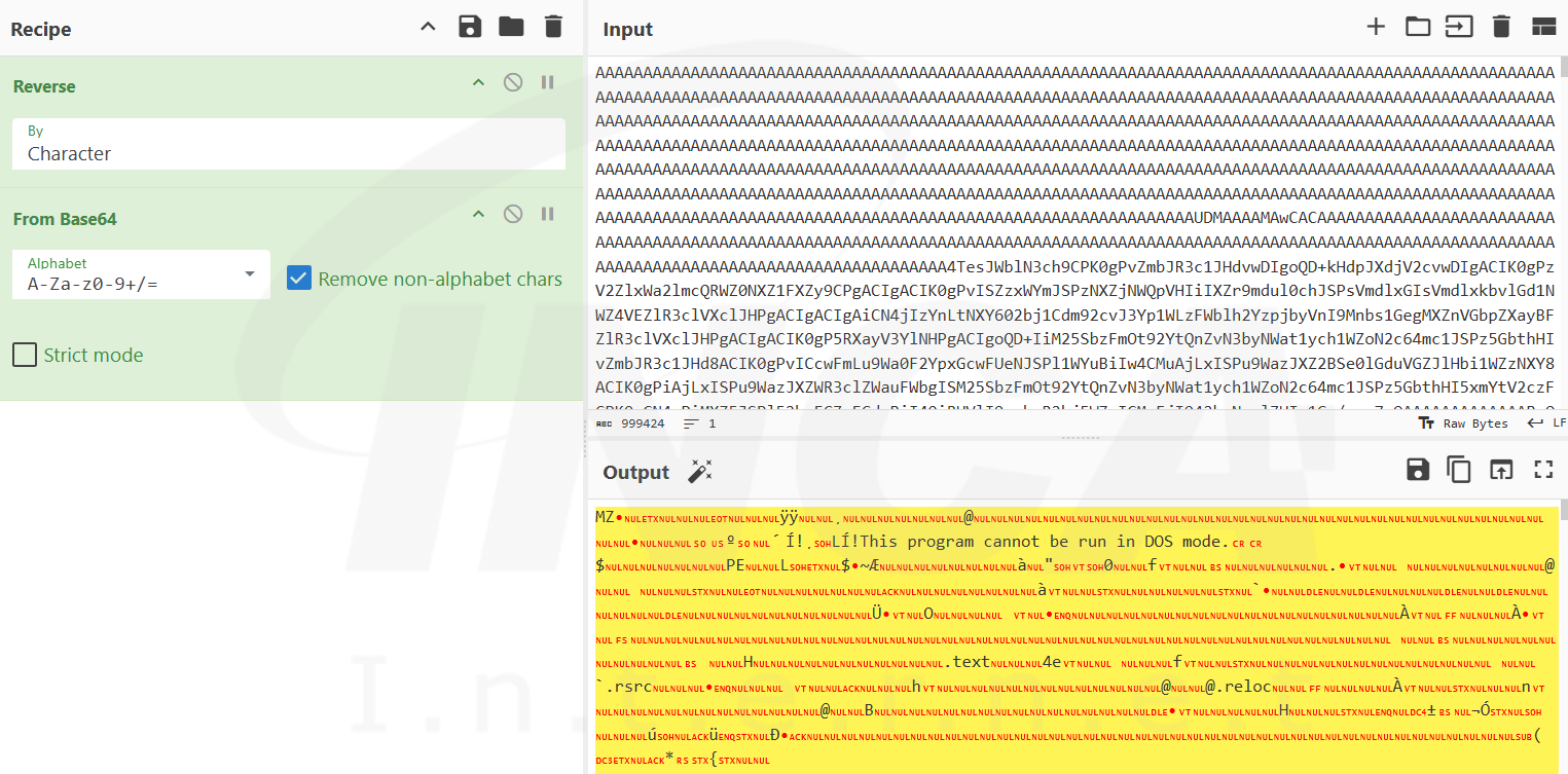 이후 실행된 DLL 은 다른 주소로부터 Phantom Stealer 실행 파일을 Base64 인코딩 후 거꾸로 뒤집은 텍스트 파일을 다운로드한다. 다운로드된 데이터는 복호화 후 로딩돼 Phantom Stealer 의 정보 탈취 기능을 수행한다.