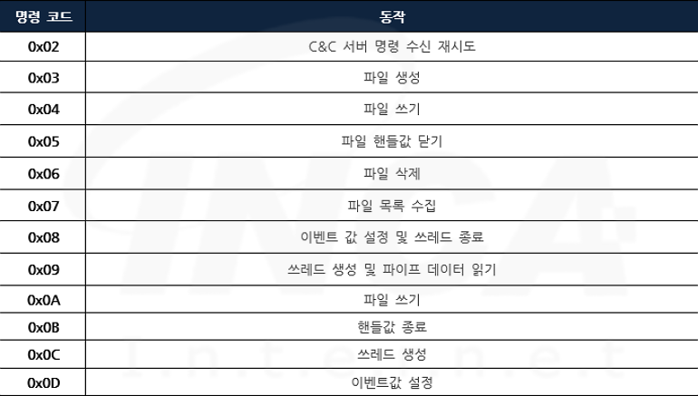 2. 유형 2의 C&C 서버 명령어