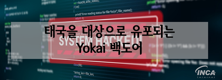 Yokai 백도어는 2024년 12월 처음 등장했으며 태국을 대상으로 미국 법무부 및 협력 요청 등의 문서로 위장한 LNK 파일 형태로 유포됐다. 해당 LNK 파일의 ADS(Alternate Data Stream) 영역에 Yokai 백도어가 포함돼 있었으며 LNK 파일 실행 시 ADS 영역에서 악성 파일을 추출한 후 DLL 사이드로딩을 이용해 실행하는 방식이 사용됐다. 2025년 8월에는 Yokai 백도어 유포에 SnakeDisk라는 USB 웜 악성코드가 사용되기도 했다. ADS를 이용한 방식과 SnakeDisk로 유포되는 두 가지 방식 모두 정상적인 EXE 파일에 DLL 형태의 Yokai 백도어를 DLL 사이드로딩을 이용해 실행하는 공통점을 가지고 있으며 해당 EXE 파일과 DLL 파일을 전달하는 과정에서 차이가 존재한다.