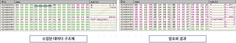 자동 실행 등록이 완료되면 백도어는 기본적인 시스템 정보를 수집한 후 0x9C 크기의 구조체를 생성하고 “Extensionswindow”라는 문자열을 Key로 사용해 XOR 암호화한다. 암호화된 데이터는 WinHttp 세션을 이용해 공격자의 C&C 서버로 전송된다.