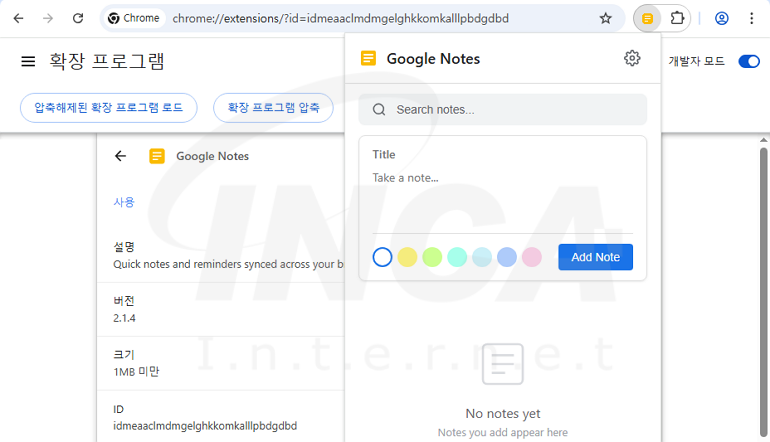 [그림 1] Google Notes로 위장한 악성 확장 프로그램