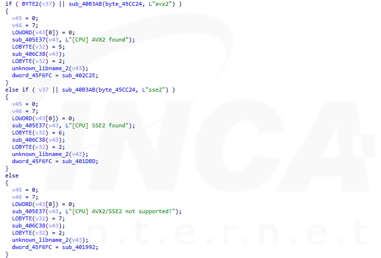 algo 옵션을 지정하면 파일 암호화 시 대상 시스템의 CPU 기능을 조회한 뒤 SIMD 방식 중 AVX와 SSE2 방식에서 적합한 명령어 체계를 선택해 암호화한다. SIMD(Single Instruction Multiple Data)는 하나의 명령어로 여러 데이터를 동시에 처리하는 연산 방식으로서 일반적인 순차 연산 대비 처리 속도가 크게 향상된다. 해당 방식을 이용해 암호화 연산산을 빠르게 하며 별도에 지정이 없을 경우 CPU 지원 여부에 따라 자동으로 선택한다.