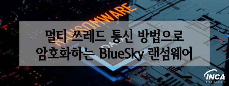 최근 “BlueSky” 랜섬웨어가 새롭게 등장했다. 해당 랜섬웨어는 “Conti”, “Babuk” 랜섬웨어와 유사한 암호화 루틴을 갖고있다. 또한, 주로 윈도우 호스트를 대상으로 하여 더 빠른 암호화를 위해 멀티 쓰레딩 기법을 사용하는 특징이 있다.