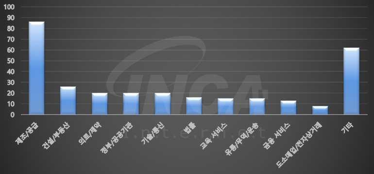2022년 3분기(7월 1일 ~ 9월 30일)에 발생한 데이터 유출 건을 산업별로 비교했을 때 제조/공급 분야가 가장 많은 공격을 받았고, 건설/부동산 분야가 그 다음으로 많은 공격을 받았다. 또한, 의료/제약, 정부/공공기관 및 기술/통신 분야가 그 뒤를 따랐다.