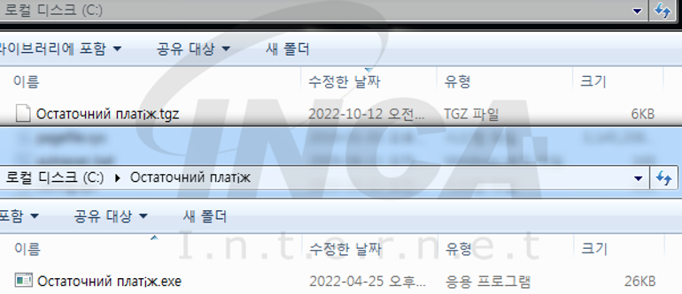 해당 공격은 Остаточний платіж (최종 결제)라는 제목으로 피싱 메일이 유포되였으며, RelicRace 악성코드가 포함된 TGZ 압축 파일이 첨부되었다.