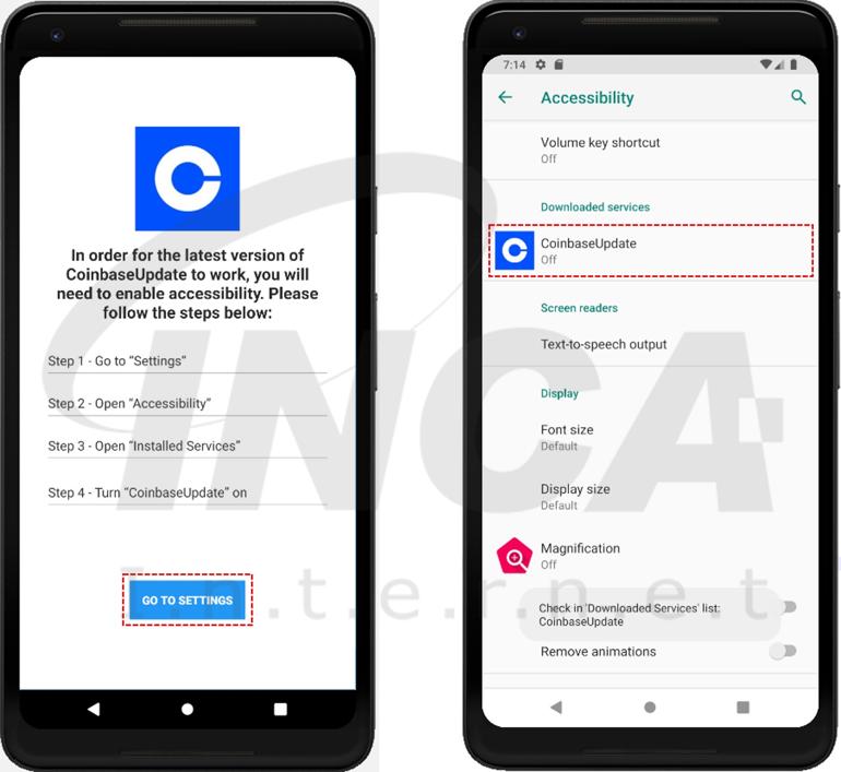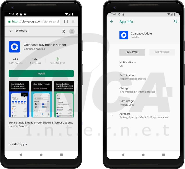 미국의 유명 암호화폐 회사인 Coinbase를 사칭한 악성 앱이 발견되었다. 해당 앱은 ‘CoinbaseUpdate’라는 이름으로 유포되었으며, 정상 Coinbase 앱과 유사한 모습을 하고 있다. 하지만 악성 앱을 실행하면, 단말기의 문자 메시지와 스크린샷 등 각종 정보를 탈취한다.
