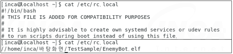 악성코드가 자동 실행되도록 예약 작업과 자동실행 관련 파일인 ‘/etc/crontab’, ‘/etc/rc.local’ 의 데이터를 삭제하고, 아래 [그림 7]과 같이 설정한다.