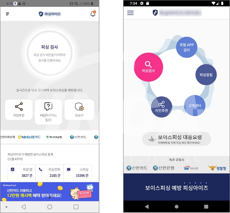 11월 24일 업데이트 버전의 정상 앱은 아래의 좌측 그림과 같고, 발견된 사칭 악성 앱은 우측 그림과 같다. 사칭한 악성 앱은 과거의 UI를 따라한 것으로 추정된다.