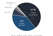 7월 한달 간 탐지된 악성코드를 유형별로 비교하였을 때 Adware(애드웨어)와 Trojan(트로이목마)가 각각 44%, 41%로 가장 높은 비중을 차지하였고, Virus(바이러스)가 10%, Trojan-Clicker(트로이목마-클리커)와 Abuse-Worry가 각각 2%로 그 뒤를 따랐다.
