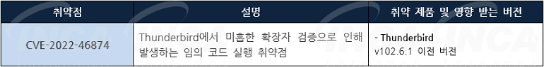 Mozilla 사는 제품에서 발생하는 취약점에 대한 보안 업데이트를 발표하고, 관련 취약점을 해결하기 위해 최신 버전으로 업데이트할 것을 권고하였다.