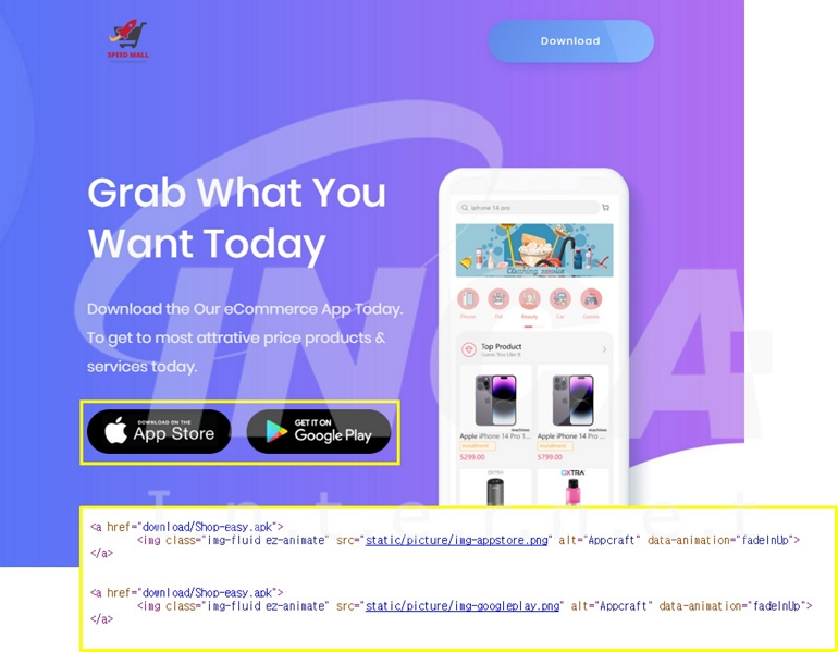 해당 앱은 아래의 그림과 같이 웹사이트를 통해 유포되었으며, 설치 버튼을 누르면 애플리케이션이 다운로드 된다.