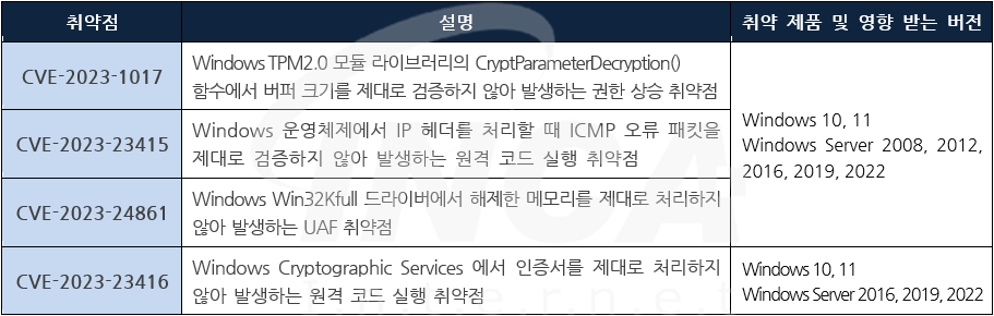 Microsoft 사는 제품에서 발생하는 취약점에 대한 보안 업데이트를 발표하고, 관련 취약점을 해결하기 위해 최신 버전으로 업데이트할 것을 권고하였다.