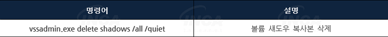 Royal 랜섬웨어는 [표 2]의 vssadmin 명령어를 실행해 시스템 복원을 무력화한다.