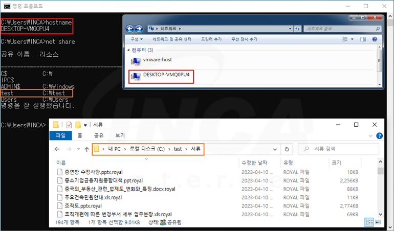 Royal 랜섬웨어를 실행할 때 암호화할 경로가 지정되지 않은 경우 감염 대상 환경에 연결된 네트워크를 감염하며, [그림 4]는 Royal 랜섬웨어로 원격 호스트를 감염한 결과이다.