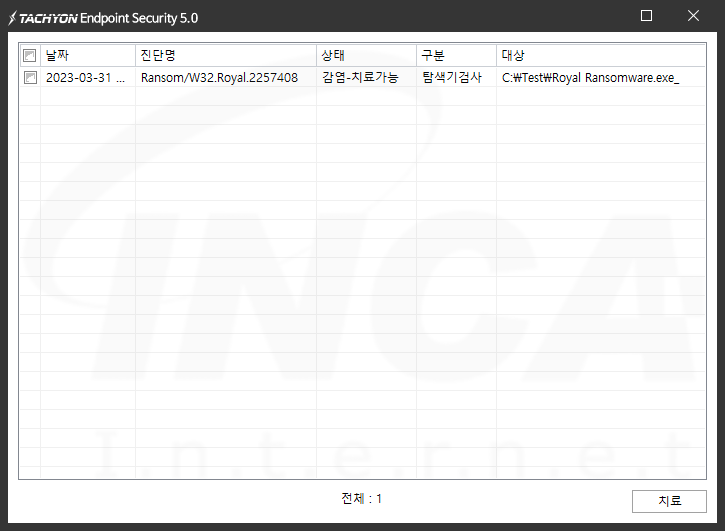 Royal 랜섬웨어를 실행하면 AES-256 암호 알고리즘을 사용해 파일을 암호화하고, 암호화를 완료한 파일은 파일 명에 “.royal” 확장자를 추가한다.