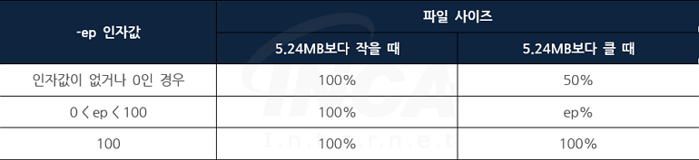 cf) 단, 해당 값이 0이거나 –ep 인자를 사용하지 않은 경우에는 50%의 비율을 적용한다.