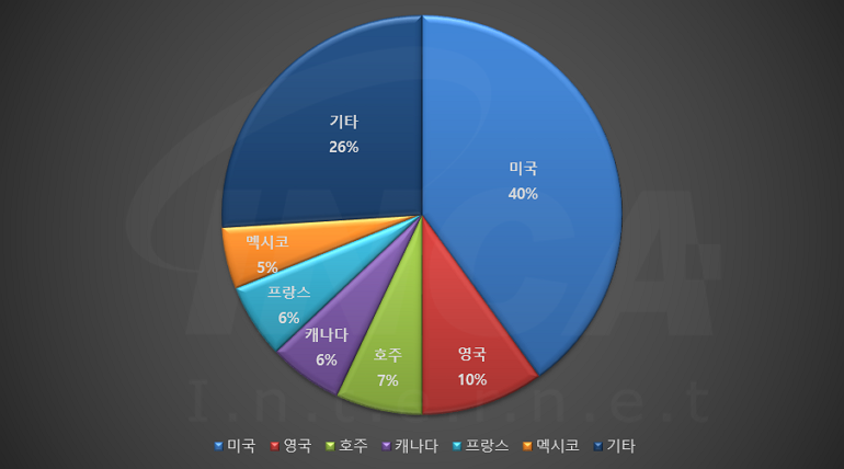 2023년 3월(3월 1일 ~ 3월 31일)에 발생한 데이터 유출 건을 국가별로 비교하였을 때 미국이 40%로 가장 높은 비중을 차지했고, 영국이 10% 호주가 7%로 그 뒤를 따랐다.
