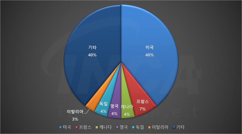 2023년 4월(4월 1일 ~ 4월 30일)에 발생한 데이터 유출 건을 국가별로 비교하였을 때 미국이 40%로 가장 높은 비중을 차지했고, 프랑스가 7%, 캐나다와 영국, 독일이 4%로 그 뒤를 따랐다.