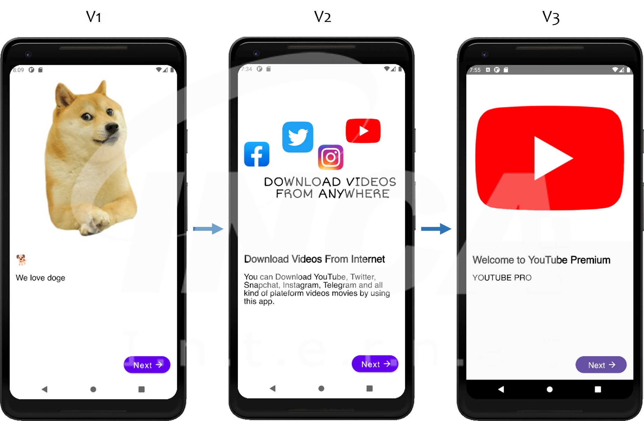 DogeRat은 몇 번의 업데이트가 있었던 것으로 보여지며, 가장 최신 버전의 경우 ‘YOUTUBE PREMIUM’의 이름으로 제작 및 배포되었다.
