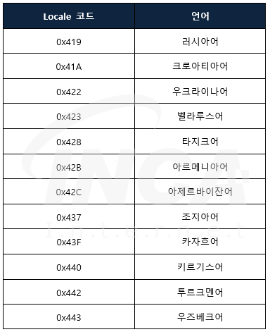 또한 시스템 키보드 레이아웃이 [표 2]와 같은 언어를 지원할 경우에도 악성 동작 없이 종료된다.