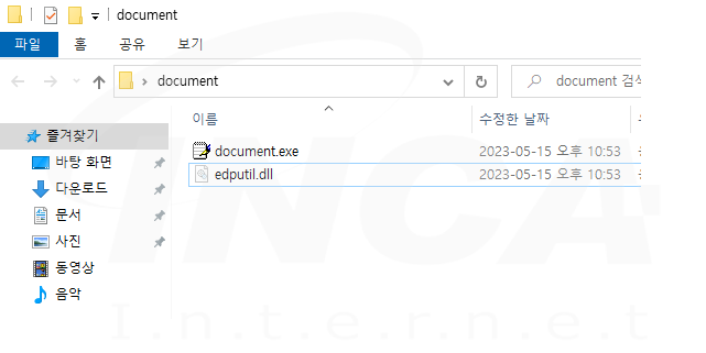 악성 edputil.dll 파일이 로딩되면, 표면상으로는 마치 실행 중 에러가 발생한 것처럼 에러 메시지를 출력한다. 이와 동시에 백그라운드 상에서는 공격자 서버로부터 default.png 라는 이름의 추가 악성 DLL 을 다운로드하며, 다운로드된 파일은 rundll32.exe 에 의해 로딩되어 실행된다.