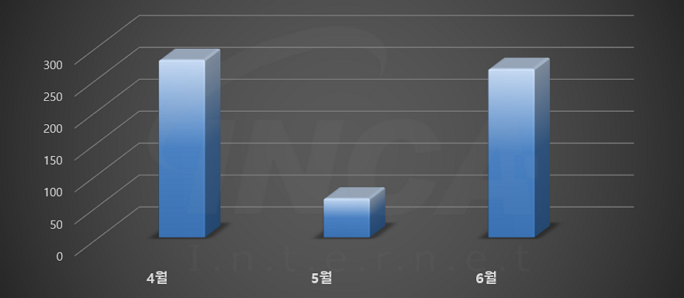 2023년 2분기(4월 1일 ~ 6월 30일)에 발생한 데이터 유출 현황을 월별로 비교하였을 때 4월에 데이터 유출이 가장 많이 발생했다.