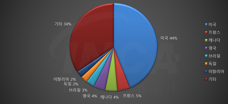 2023년 2분기(4월 1일 ~ 6월 30일)에 발생한 데이터 유출 건을 국가별로 비교했을 때 미국이 44%로 가장 높은 비중을 차지했고, 프랑스가 5%, 캐나다가 4%로 그 뒤를 따랐다.