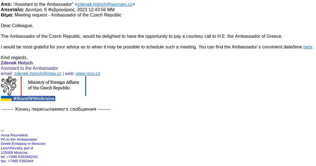 해당 캠페인에서는 유럽의 대사관을 사칭하는 이메일을 외교관 직원들에게 유포하는 스피어 피싱 공격 기법을 사용하였다. 메일에는 PDF 문서 및 다운로드 링크가 포함되어있고, 해당 링크로 연결하면 “ENVTSCOUT” 라고 하는 공격자의 서명 스크립트가 포함된 악성 웹사이트로 연결된다. 해당 웹 사이트에서 HTML Smuggling 기법을 통해 최종적으로 악성 코드를 다운로드하도록 한다. 이때, HTML Smuggling 기법은 HTML5 및 자바 스크립트의 기능을 악용하여 악성코드를 자동으로 피해자 PC에 다운로드 하도록 하는 공격 기법이다.