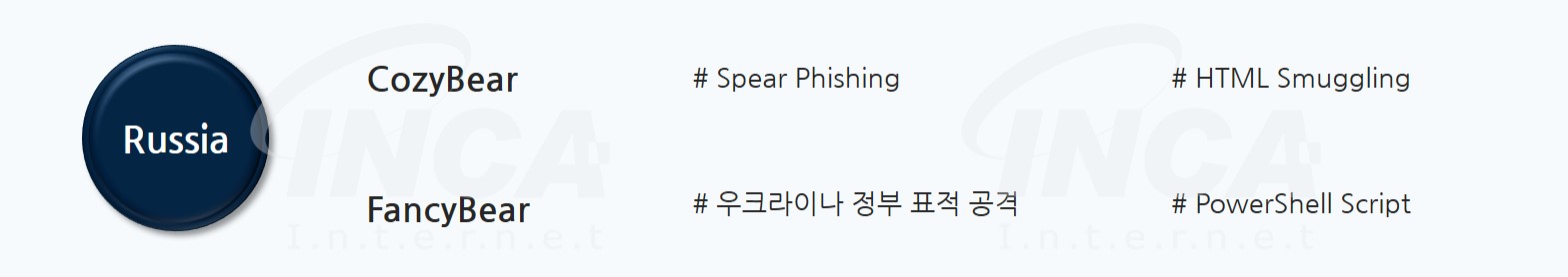 2023년 2분기에는 CozyBear 해커 그룹과 FancyBear 해커 그룹의 공격이 발견되었다. 두 해커 그룹은 러시아 정부기관을 배후로 두고 있는 것으로 전해지며, 2000년대 초반부터 활발하게 활동하였다. 이번 2분기에는 CozyBear 해커 그룹과 FancyBear 해커 그룹이 유사하게 피싱 메일을 활용한 APT 공격을 수행하였다.