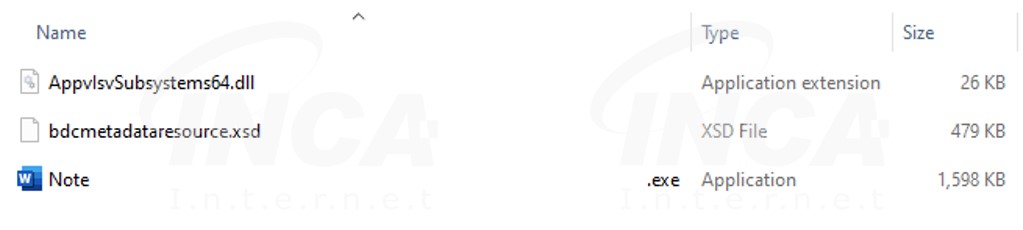 아래의 그림은 피싱 메일에 첨부된 ISO 파일을 통해 유포된 모듈로, DLL과 XSD 파일이 숨김 속성으로 있으며 문서 파일로 위장한 실행 파일이 존재한다.