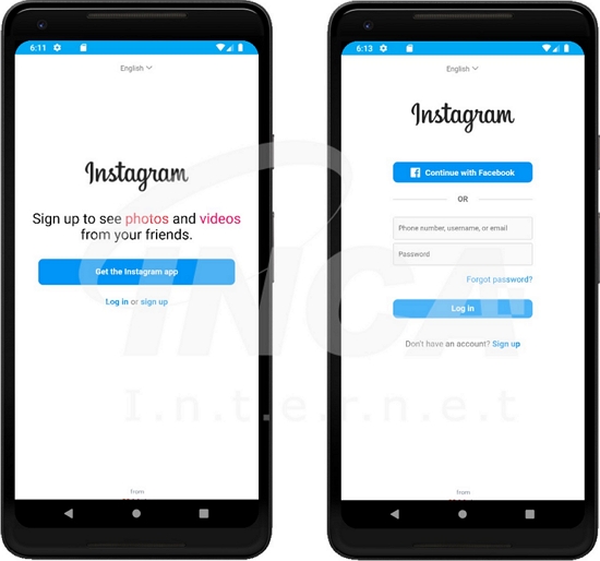 해당 앱을 실행하면 좌측 하단의 그림과 같이 정상 Instagram 애플리케이션을 설치 및 실행하도록 한다. 로그인 버튼을 클릭하면, 정상 Instagram 로그인 페이지를 띄우면서 사용자를 속인다.