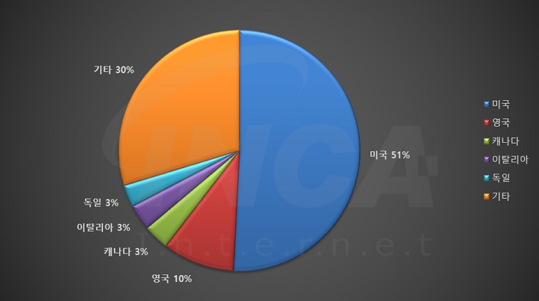 2023년 7월(7월 1일 ~ 7월 31일)에 발생한 데이터 유출 건을 국가별로 비교하였을 때 미국이 51%로 가장 높은 비중을 차지했고, 영국과 캐나다가 각각 10%와 3%로 그 뒤를 따랐다.