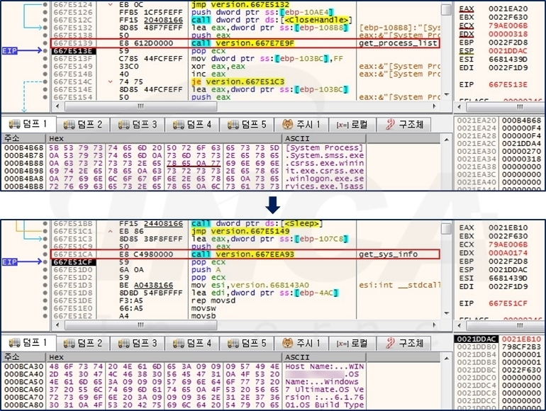 이후, 감염된 PC의 프로세스 목록과 시스템 정보를 수집한다.