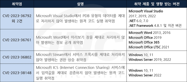 Microsoft 사는 제품에서 발생하는 취약점에 대한 보안 업데이트를 발표하고, 관련 취약점을 해결하기 위해 최신 버전으로 업데이트할 것을 권고하였다.