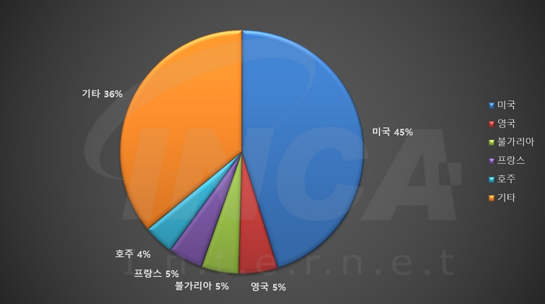 2023년 9월(9월 1일 ~ 9월 30일)에 발생한 데이터 유출 건을 국가별로 비교하였을 때 미국이 45%로 가장 높은 비중을 차지했고, 영국과 불가리아, 프랑스가 5%로 그 뒤를 따랐다.