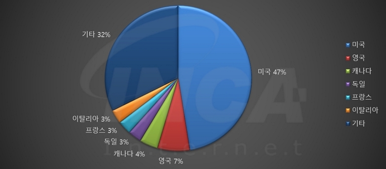 2023년 3분기(7월 1일 ~ 9월 30일)에 발생한 데이터 유출 건을 국가별로 비교했을 때 미국이 47%로 가장 높은 비중을 차지했고, 영국이 7%, 캐나다가 4%로 그 뒤를 따랐다.