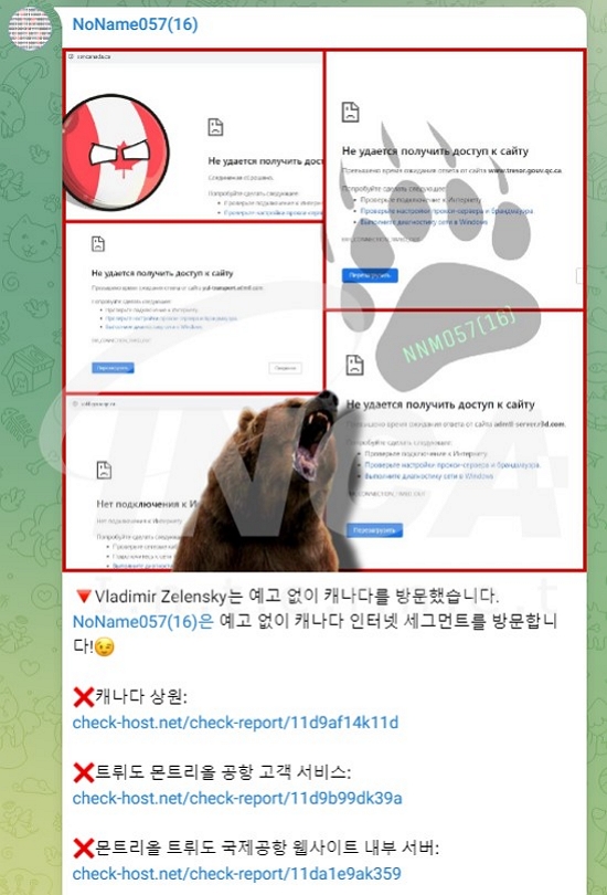NoName 해커그룹은 친러 성향의 해커그룹으로, 유럽의 금융기관 및 정부 웹사이트, 교통 서비스 등에 대해 DDoS 공격을 수행하였다. 이번 3분기에도 캐나다의 여러 공항에 DDoS 공격을 수행한 것으로 전해진다. 이번 공격으로 체크인 키오스크와 전자 게이트 등에 영향을 미쳤으며, 몇 시간 동안 일부 서비스가 중단되었다. NoName 해커그룹은 해당 공격에 대해 텔레그램을 통해 공지하였다.