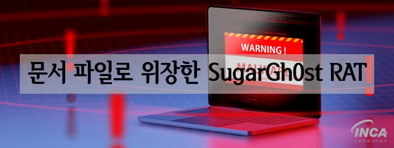 “SugarGh0st RAT” 악성코드는 문서 파일로 위장해 사용자의 방심을 유도하고, 실행된 후에도 감염 사실을 인지하기 어려워 주의가 필요하다. 따라서, 출처가 불분명한 파일의 다운로드 및 실행을 지양하고, 보안 프로그램과 OS를 항상 최신버전으로 유지할 것을 권고한다.