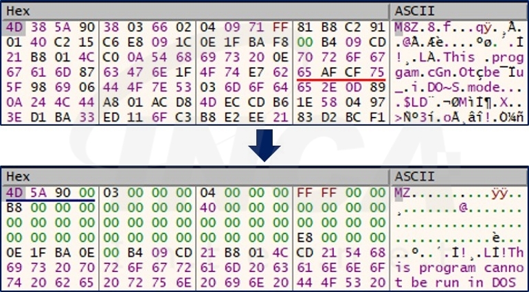 “DPLAY.LIB” 파일에는 인코딩된 “SugarGh0st” 페이로드가 포함돼 있으며, 디코딩 후 PE 포맷의 페이로드를 메모리에 매핑 및 실행한다.