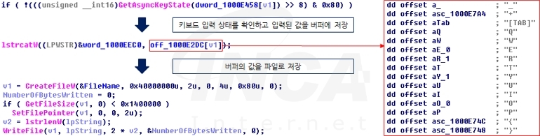 “SugarGh0st” 페이로드는 먼저 사용자의 키보드 입력을 모니터링하고 파일에 기록하는 키로깅 동작을 수행한다.