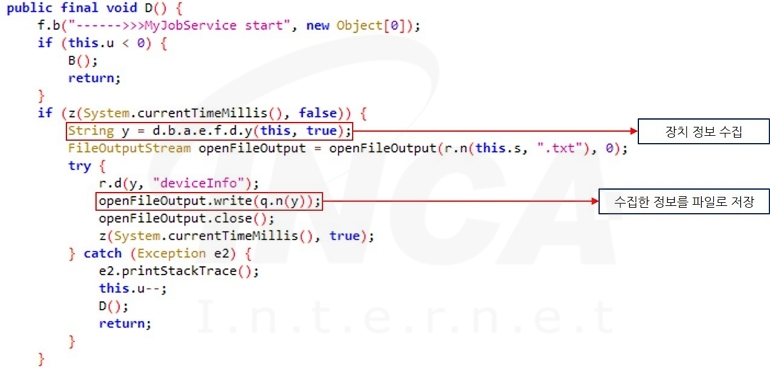 또한, [그림 1]에서 요청한 권한을 이용해 감염된 디바이스에서 [표 1]의 정보를 수집한다.
