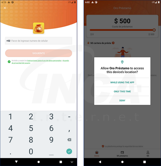 “SpyLoan” 앱은 먼저 전화번호 인증을 이용해 사용자 등록 및 로그인을 요청하며, 미리 설정된 국가 번호는 대상 국가를 특정하고 있음을 알 수 있다. 로그인에 성공하면, 데이터를 수집하기 위해 과도한 권한을 요청한다.